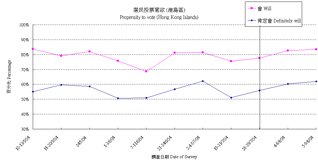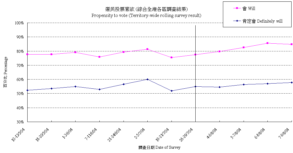 | Question : Will you vote in the coming Legislative Council Election in September? (Interviewers to inquire propensity) |