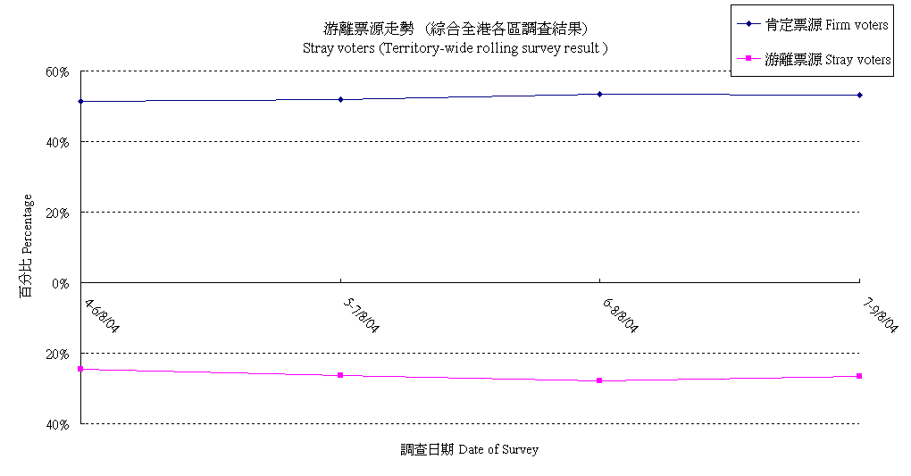 | The figures presented below are based on registered voters only, details are available at "Contact Information". All election surveys are sponsored by Civic Exchange. |