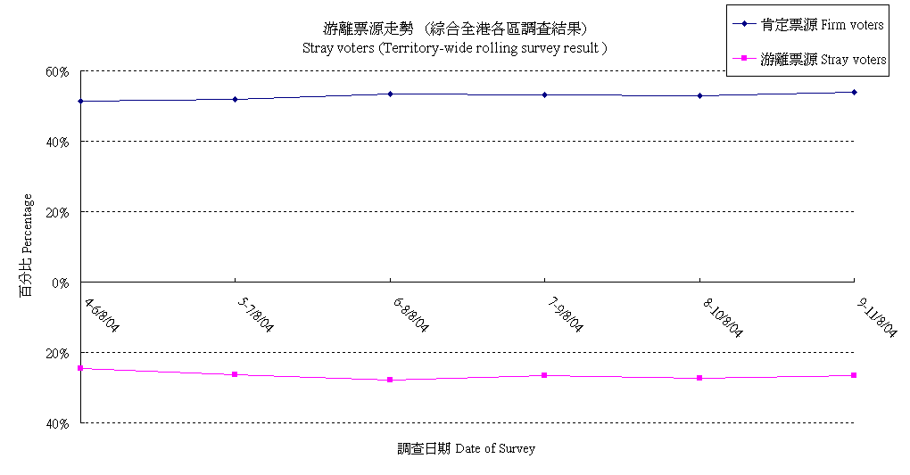 | The figures presented below are based on registered voters only, details are available at "Contact Information". All election surveys are sponsored by Civic Exchange. |