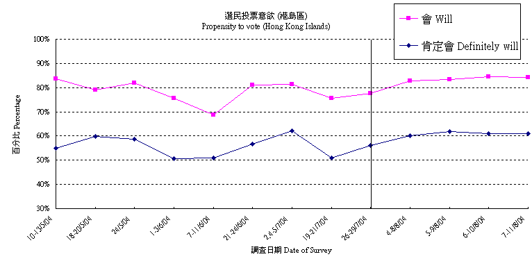 | Question : Will you vote in the coming Legislative Council Election in September? (Interviewers to inquire propensity) |