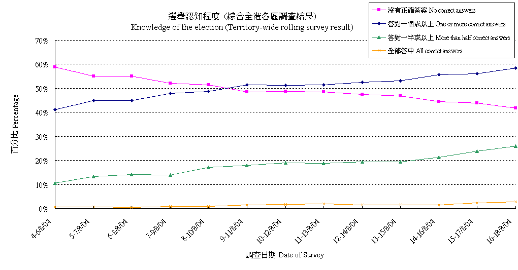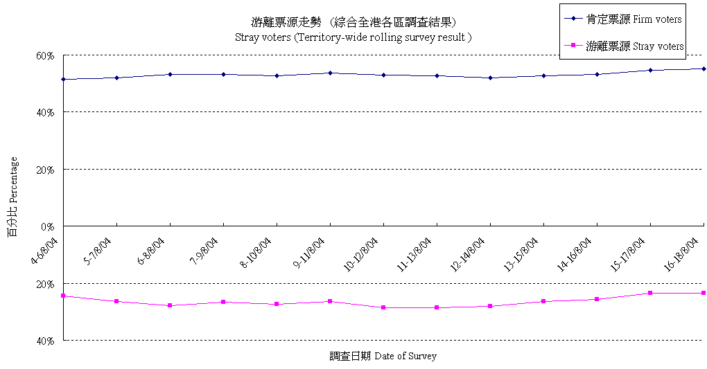 | The figures presented below are based on registered voters only, details are available at "Contact Information". All election surveys are sponsored by Civic Exchange. |