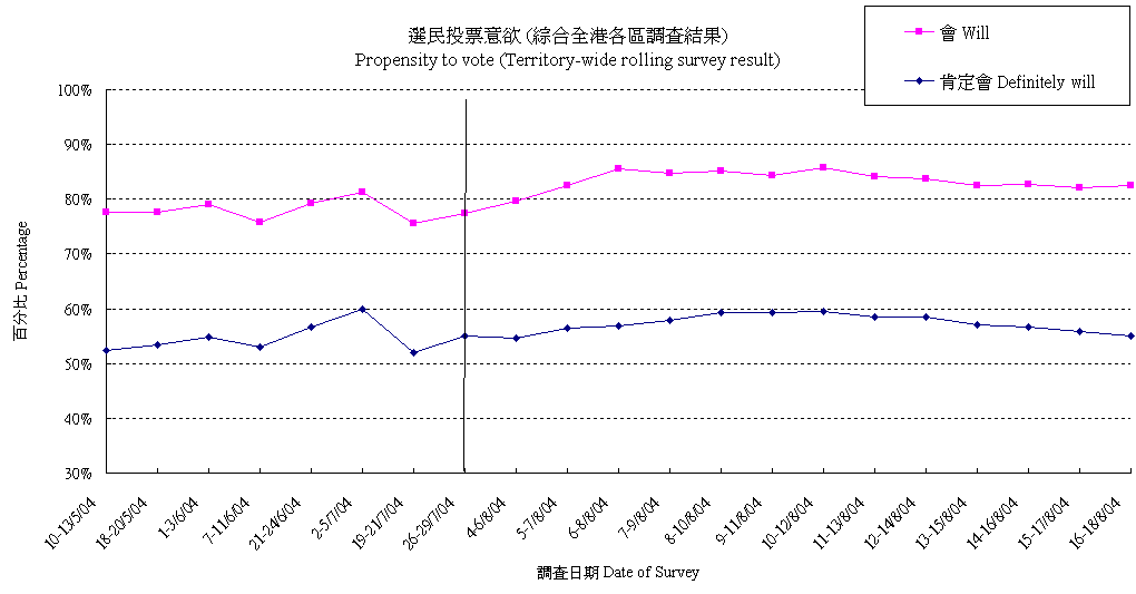 | Question : Will you vote in the coming Legislative Council Election in September? (Interviewers to inquire propensity) |