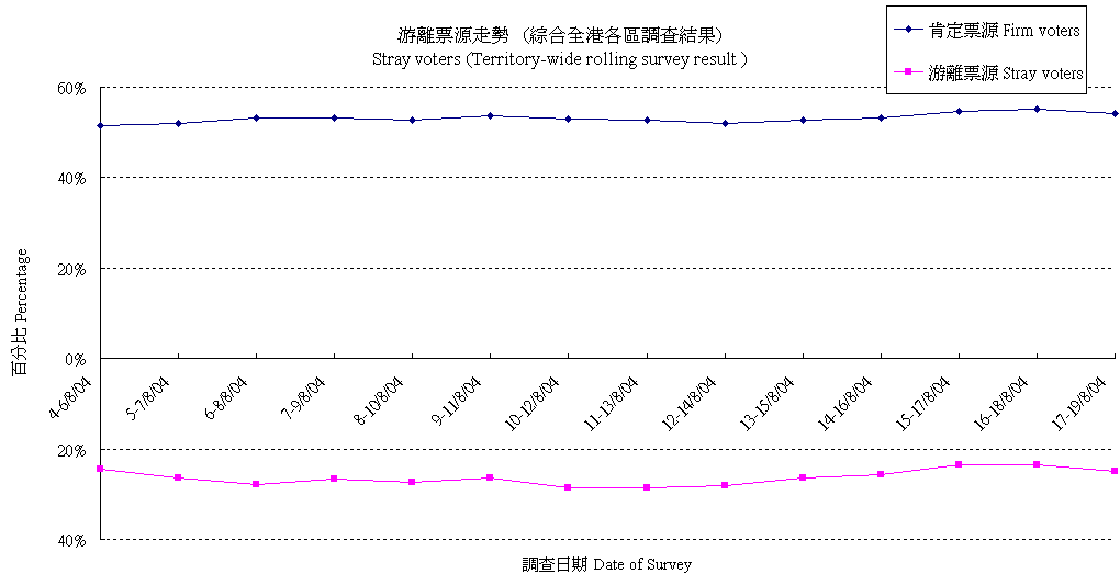 | The figures presented below are based on registered voters only, details are available at "Contact Information". All election surveys are sponsored by Civic Exchange. |