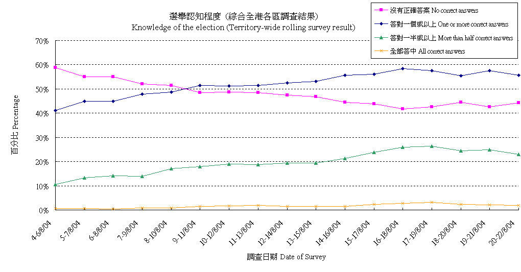 | 14-18/8/04 | 50.4% | 27.1% | 22.5% | 100.0% |