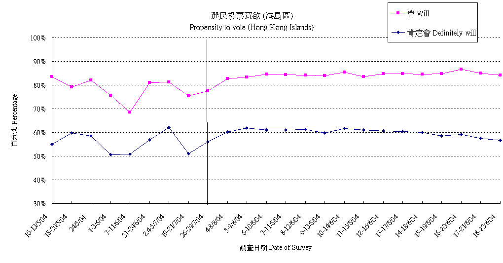| Question : Will you vote in the coming Legislative Council Election in September? (Interviewers to inquire propensity) |