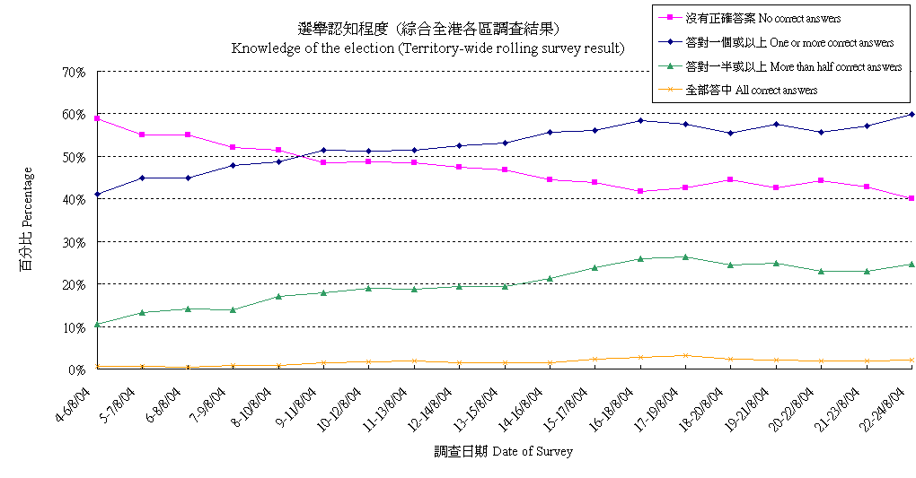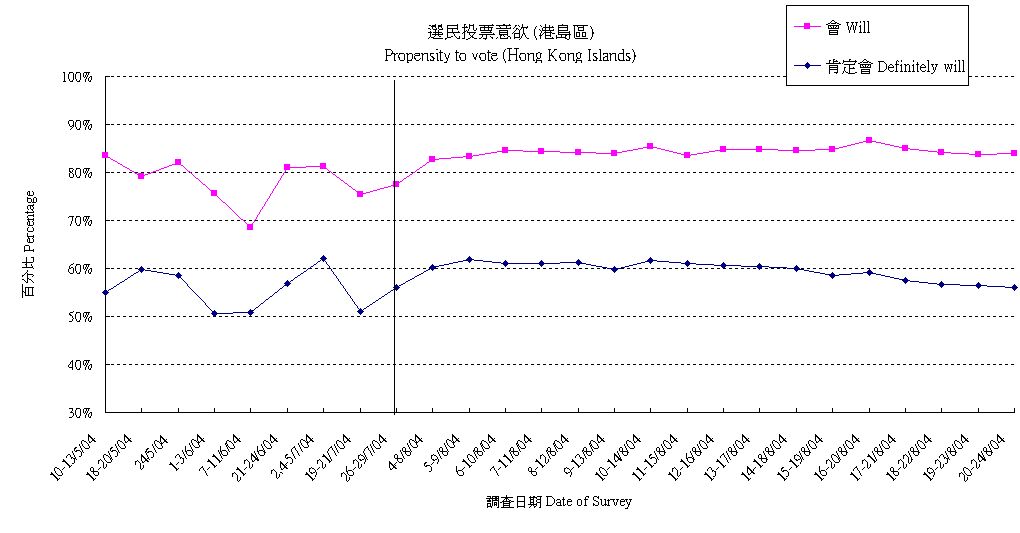 | The figures presented below are based on registered voters only, details are available at "Contact Information". All election surveys are sponsored by Civic Exchange. |