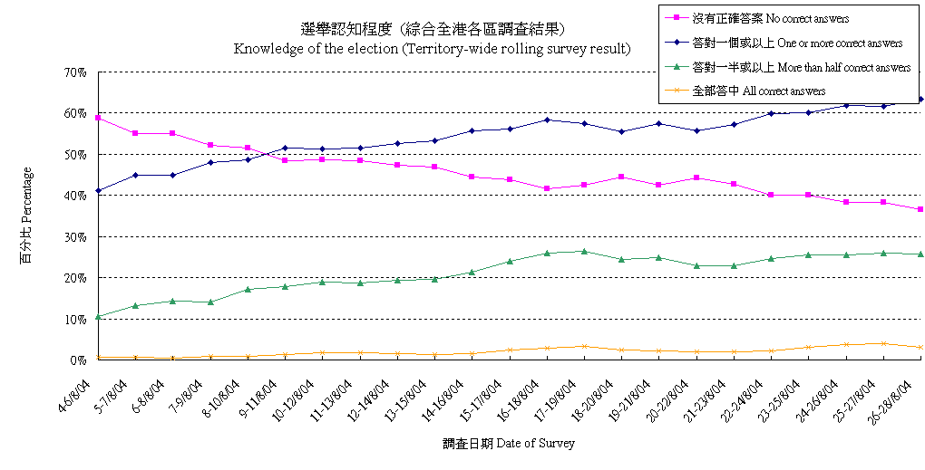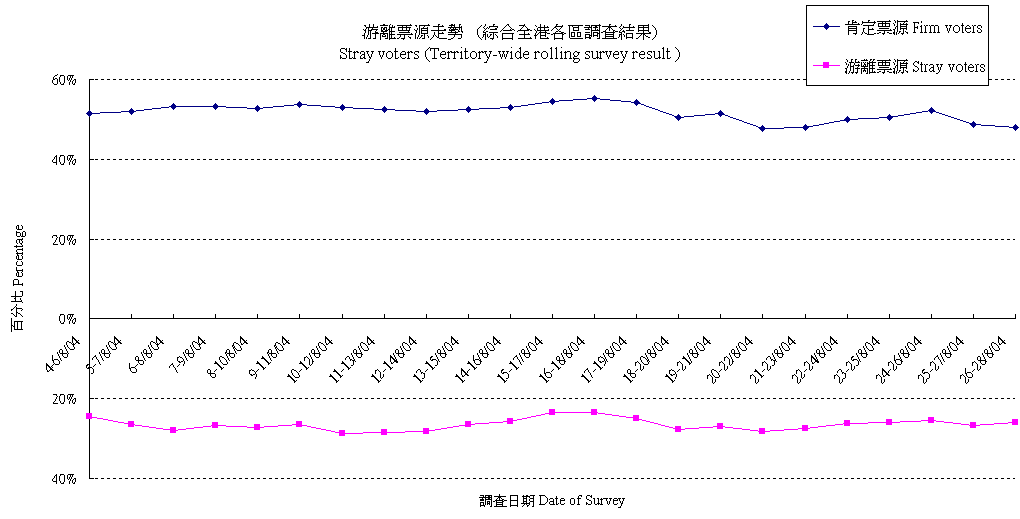 | The figures presented below are based on registered voters only, details are available at "Contact Information". All election surveys are sponsored by Civic Exchange. |