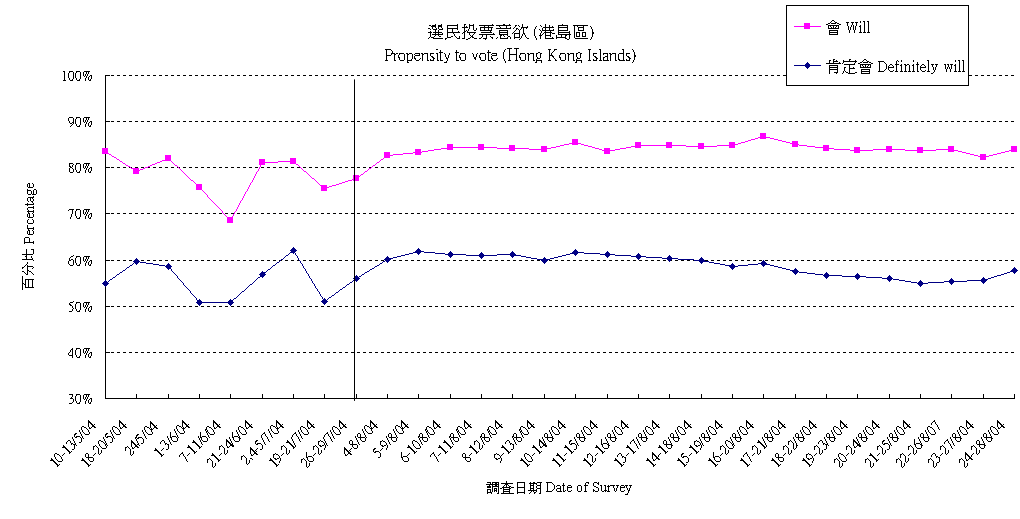 | Question : Will you vote in the coming Legislative Council Election in September? (Interviewers to inquire propensity) |