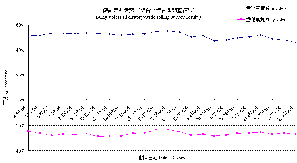 | The figures presented below are based on registered voters only, details are available at "Contact Information". All election surveys are sponsored by Civic Exchange. |