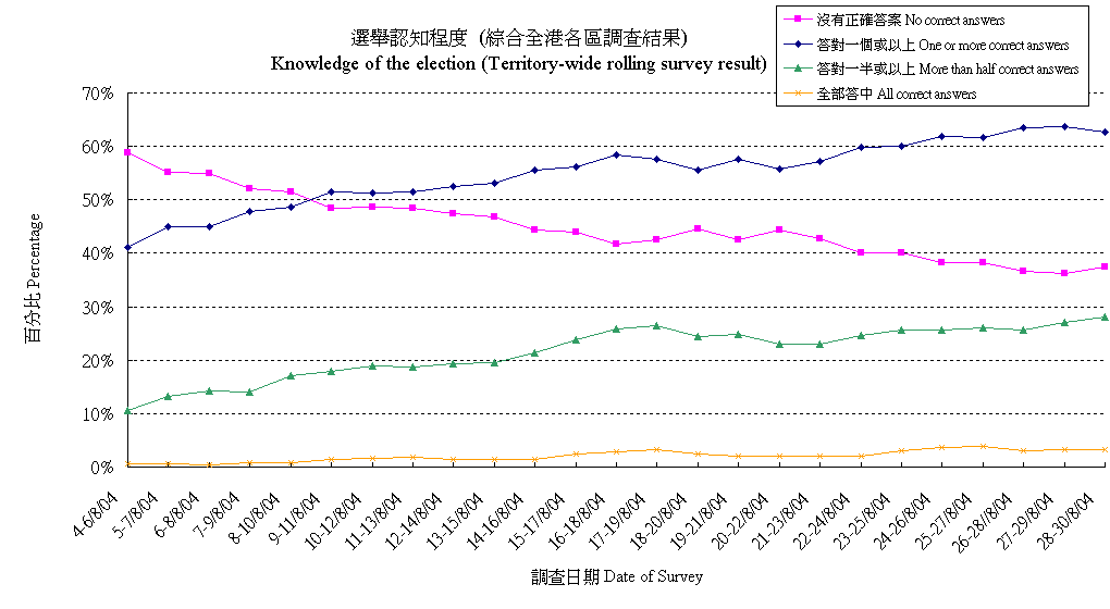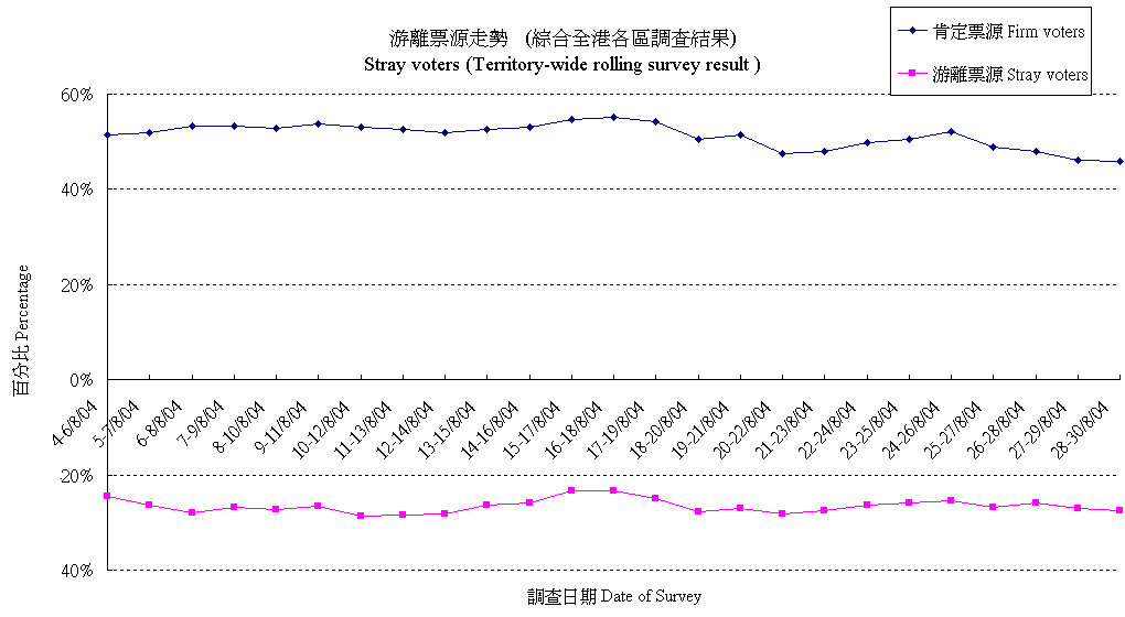 | The figures presented below are based on registered voters only, details are available at "Contact Information". All election surveys are sponsored by Civic Exchange. |