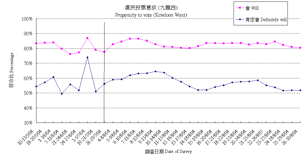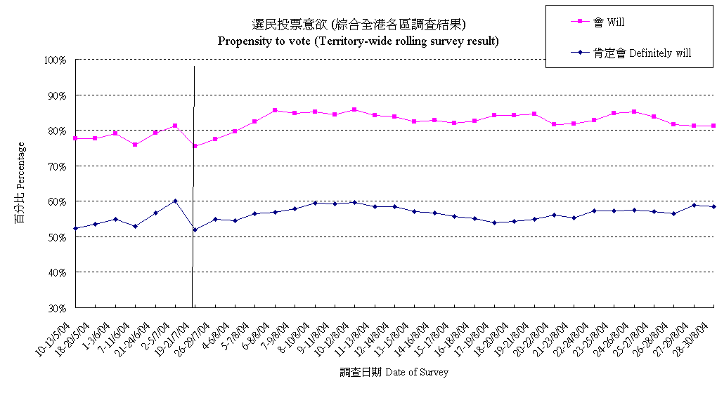 | Question : Will you vote in the coming Legislative Council Election in September? (Interviewers to inquire propensity) |