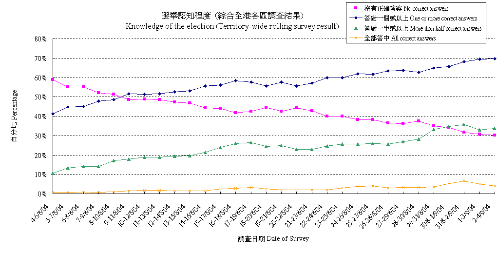 | The figures presented below are based on registered voters only, details are available at "Contact Information". All election surveys are sponsored by Civic Exchange. |
