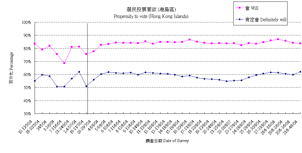 | Question : Will you vote in the coming Legislative Council Election in September? (Interviewers to inquire propensity) |