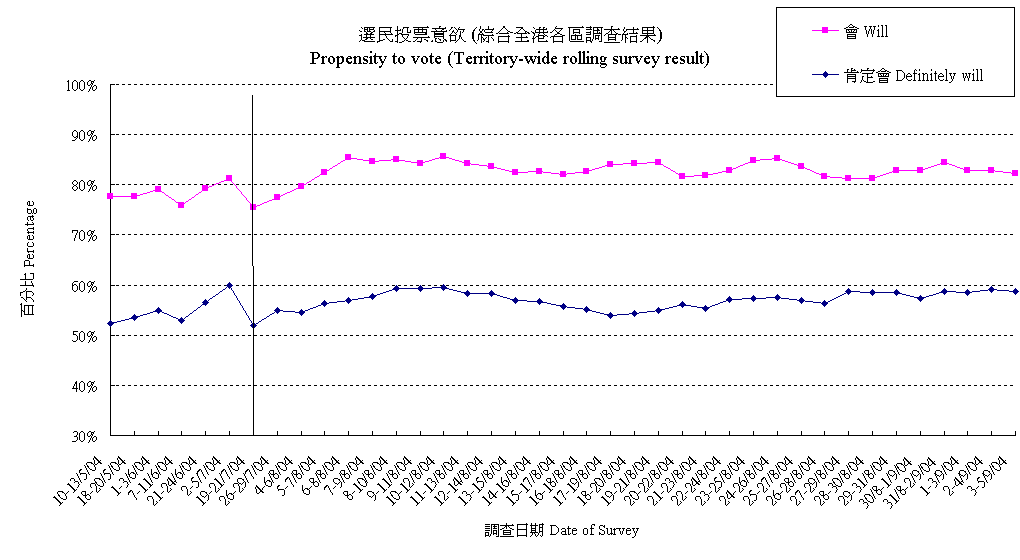 | Question : Will you vote in the coming Legislative Council Election in September? (Interviewers to inquire propensity) |