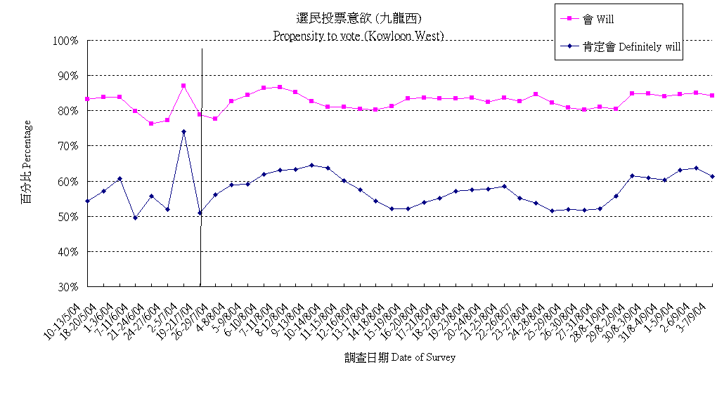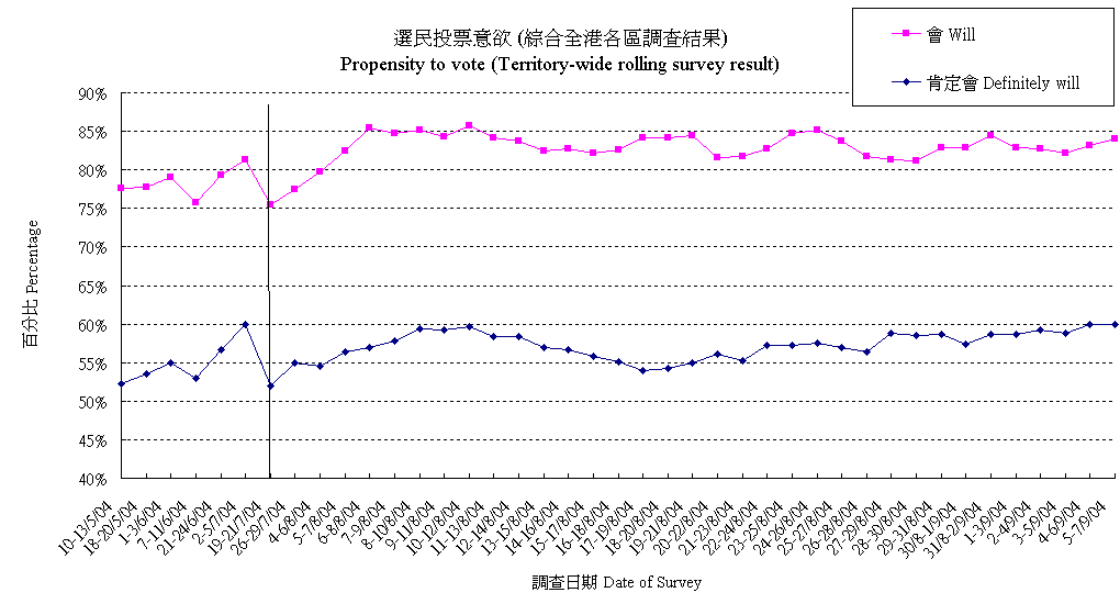 | Question : Will you vote in the coming Legislative Council Election in September? (Interviewers to inquire propensity) |