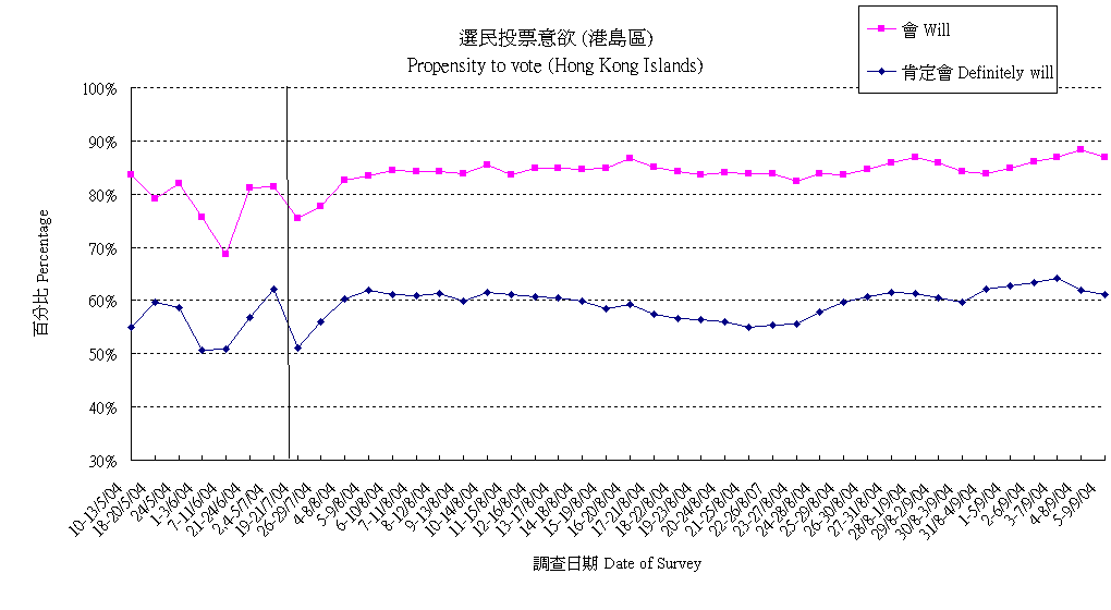 | Question : Will you vote in the coming Legislative Council Election in September? (Interviewers to inquire propensity) |